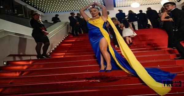 إمرأة تسكب الدماء على نفسها خلال مهرجان ” كان Cannes”