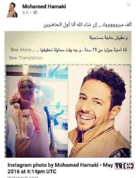 الفنان المصري محمد حماقى لبى رغبة معجبته “ريهام كهرمانة” بأن يكون أول الحاضرين لحفل زفافها، وبالفعل كان حماقى ضمن قائمة الحاضرين.