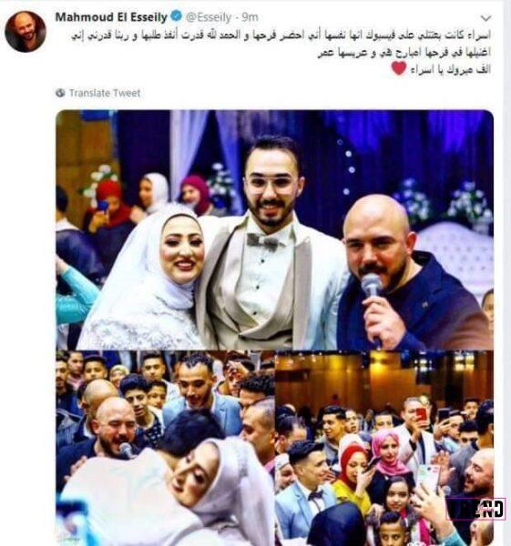 وأيضا الفنان محمود العسيلي على تحقيق رغبة إحدى معجباته بحضور حفل زفافها، حيث نشر عبر صفحته الرسمية على موقع” فيسبوك” صورة لمنشور طلبت فيه فتاة تدعى “إسراء” أن يحضر “العسيلي” فرحها، وعلق العسيلي عليه: “إسراء أنا قريت كلامك وفضيت نفسي عشان أقدر أجيلك، وإن شاء الله الفرح هيكون تحفة، بس اعمليلي طبق حلو كدا من البوفيه”.